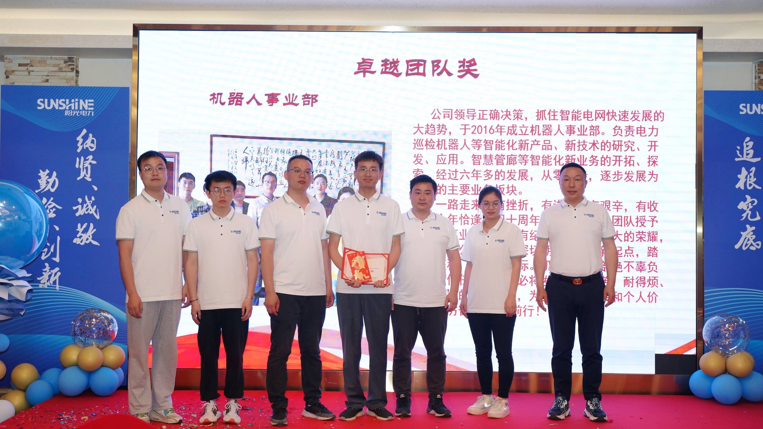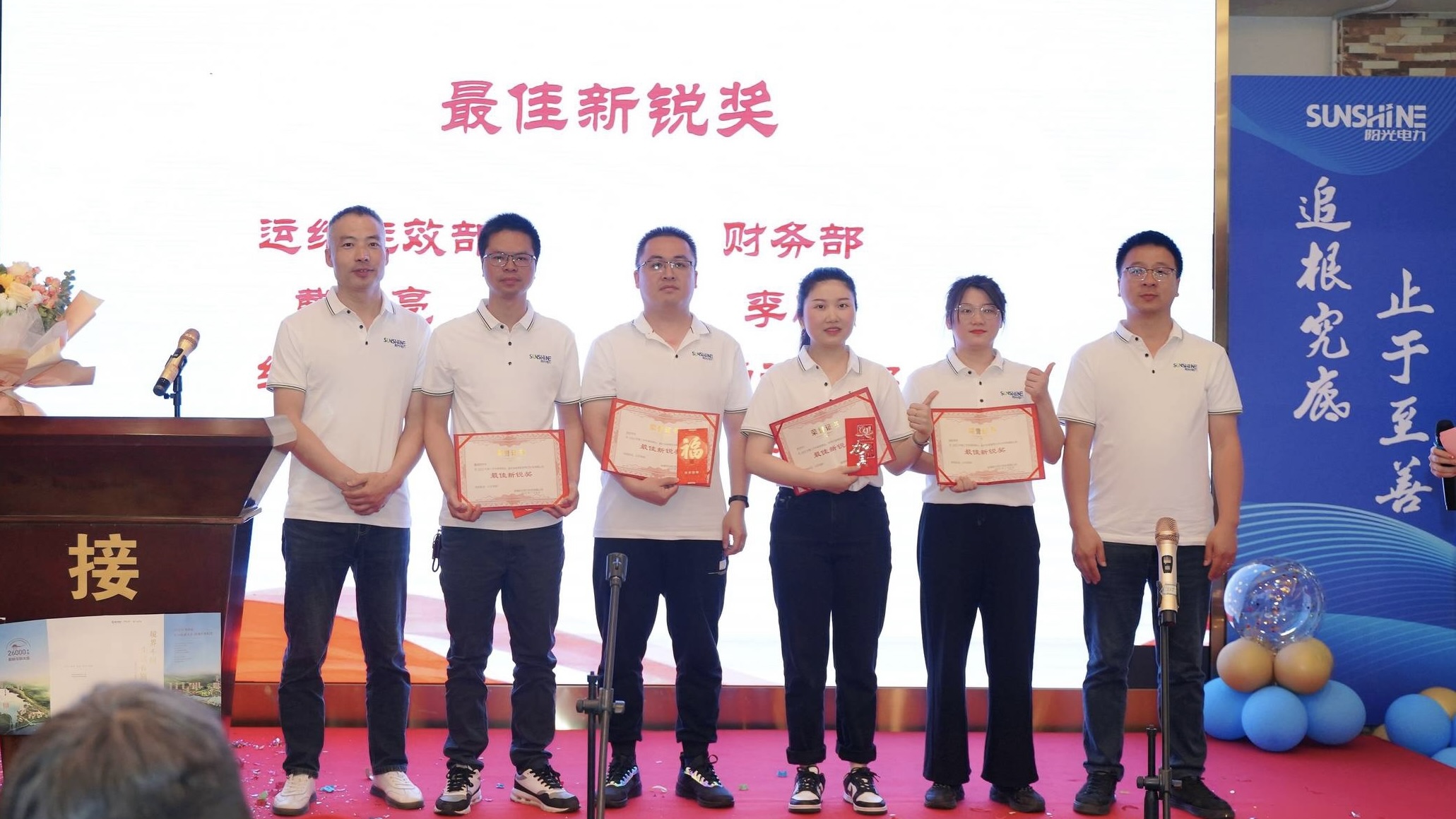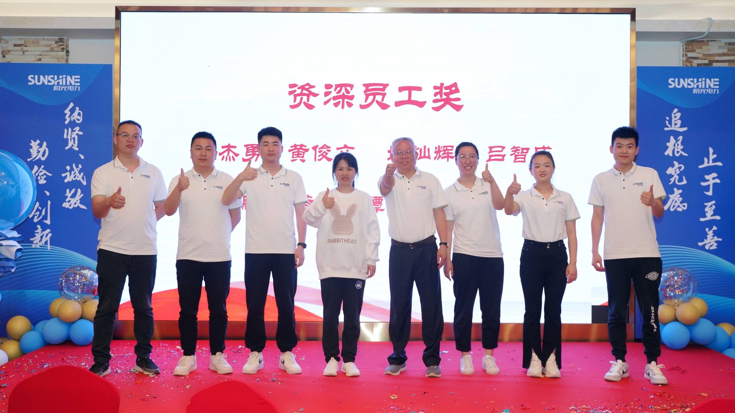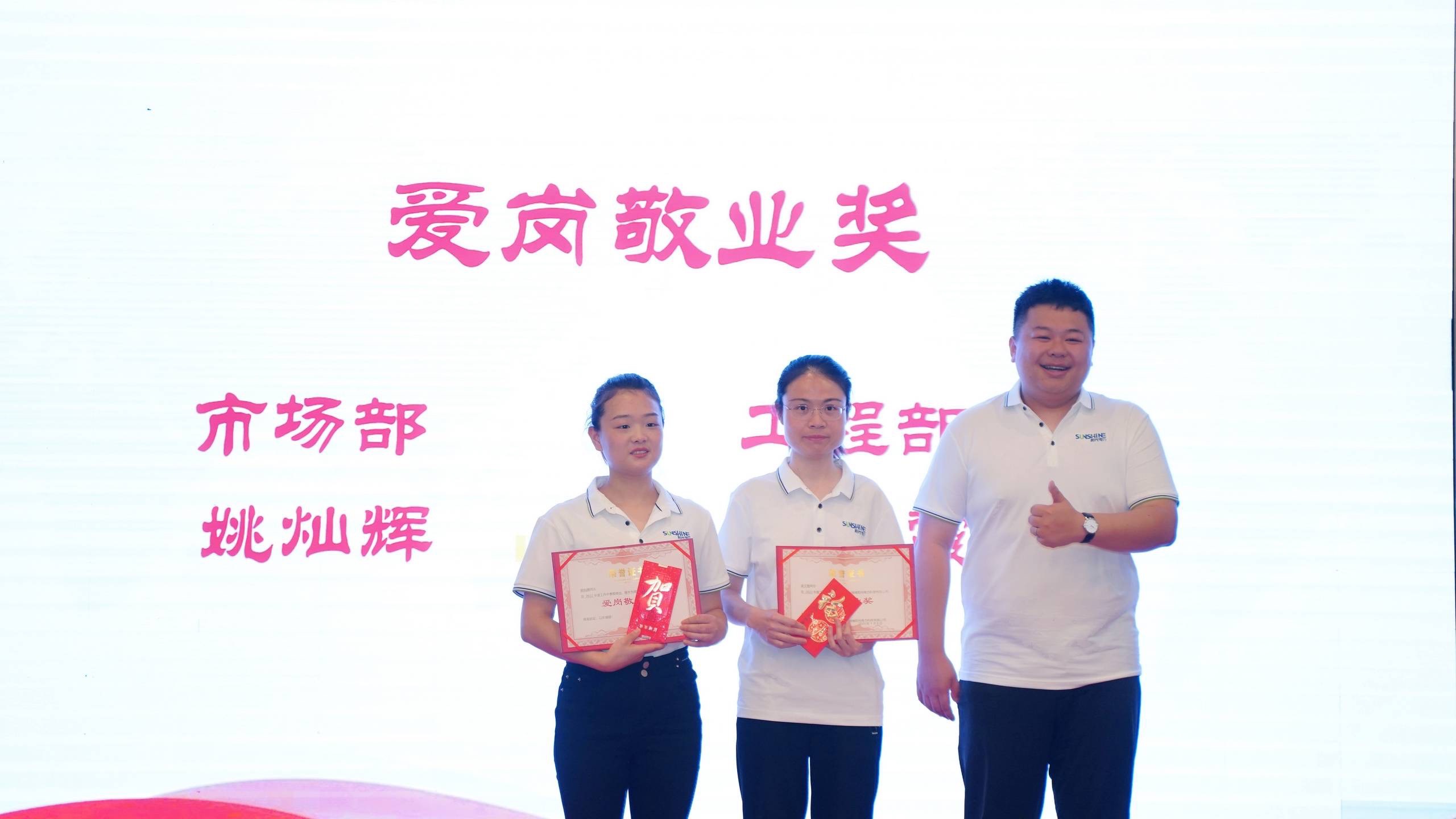 在熱烈的氣氛中,公司為資深員工分別頒發資深員工獎、忠誠奉獻獎、風雨同舟獎。紀念獎杯。與公司共同創業,不離不棄,這份榮譽來之不易,更代表著陽光電力對所有為公司做出突出貢獻的團隊的珍視與感謝。